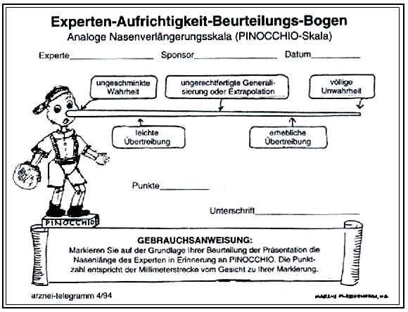 wissenschaftliche Unaufrichtigkeit länger und länger wird. Die dargestellte PINOCCHIO-Skala mag den Zuhörern die Einschätzung der