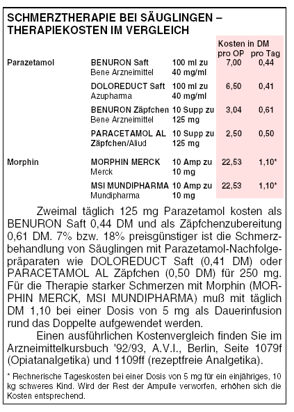 erschweren die Schmerztherapie bei Säuglingen. Analgetika sollen nach klinischem Ansprechen, soweit es sich beurteilen läßt, sowie nach