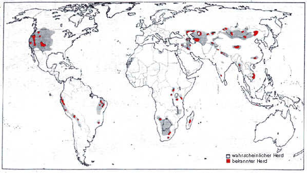 pestis (früher Pasteurella pestis). Wandern die Nager wegen starker Vermehrung, Futtermangels oder Naturkatastrophen in andere Gebiete, infizieren sie dort