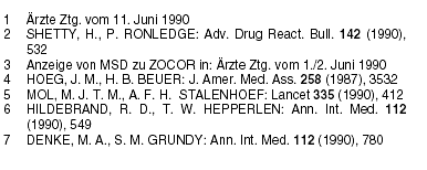 Seit Juni 1990 ist mit Simvastatin (DENAN, ZOCOR) neben Lovastatin (MEVINACOR) der zweite HMG-CoA-Reduktasehemmer erhältlich. Beide Wirkstoffe werden bei Fettstoffwechselstörungen mit diätetisch nicht einstellbarem erhöhten LDL-Serumcholesterin eingesetzt. Sie stammen aus der MSD-Forschung und sollen sich – schenkt man dem Dieckmann-Sprecher bei der Einführungskonferenz in Berlin Glauben – weder in der Wirkung noch in den Nebenwirkungen unterscheiden.1 Unterschiede in Art und Häufigkeit von Störwirkungen können auf der unterschiedlichen Erfahrungstiefe für die beiden eingeführten "Statine" beruhen. Wegen des grundsätzlich neuen Wirkmechanismus (vgl. a-t 2 [1988], 18) ist besondere Aufmerksamkeit bei der Beobachtung der unerwünschten Effekte erforderlich.