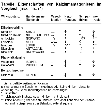 Nifedipin-Varianten wie Nicardipin (ANTAGONIL) und Nisoldipin (BAYMYCARD) bei Patienten mit stabiler Angina pectoris beschrieben.