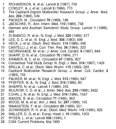 besser als die von Milrinon7 oder Captopril.3 Der Einfluß von Digitalis auf die Langzeitmortalität bei chronischer Herzinsuffizienz