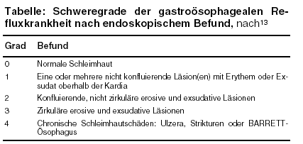 aus, empfiehlt es sich, den Befund endoskopisch abzuklären. Die leichtgradige Ösophagitis (Grad 1-2) läßt sich mit H2-Antagonisten