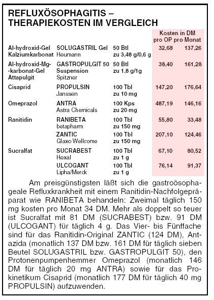 Cisaprid verhüten.1 Täglich 450 mg Ranitidin plus 30 mg Cisaprid schützen deutlich besser als Ranitidin allein.20 Die Kombination