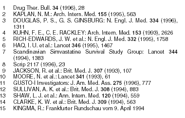 (DENAN u.a.) Frauen mit Herzinfarkt oder Angina pectoris vor erneuten Herzkranzgefäßerkrankungen schützt, läßt sich ein Einfluß auf