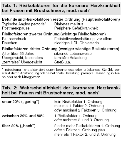 pectoris allein vorherrscht.3,11 Frauen mit Brustschmerzen leiden seltener an koronarer Herzkrankheit als Männer. Nur bei gut der Hälfte