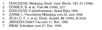 Das Abhängigkeitspotential von transdermalem Fentanyl ist nicht größer als das von retardiertem Morphin und bei Schmerzpatienten von untergeordneter Bedeutung (vgl. a-t 2 [1994], 21). Für eine Regelung der Entsorgung fühlen sich weder der Hersteller noch das Bundesinstitut für Arzneimittel und Medizinprodukte zuständig.6,7 Nach dem Gebrauch bleiben beachtliche Mengen Fentanyl im Pflaster (rund 2,5 mg beim größten Pflaster). Warum sollte der Hersteller nicht zur Rücknahme gebrauchter Pflaster verpflichtet werden? Der bürokratisierte, durch die Betäubungsmittel-Verschreibungsverordnung geregelte Vertriebsweg von DUROGESIC wird zur Farce, wenn die Pflaster nach Gebrauch mit etwa 25% der Ausgangswirkstoffmenge im Hausmüll landen, –Red.