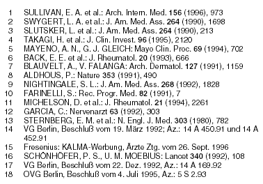 Die Berliner Verwaltungsgerichte kehrten bereits wiederholt den Grundtenor des CONTERGAN-Einstellungsbeschlusses* zu Lasten der Patienten um, eine Urteilspraxis, die im Falle des angeblichen Knorpelschutzmittels ARTEPARON zwei Patienten das Leben kostete (a-t 3 [1993], 26).16 Auch für den Knorpelknochenmarkextrakt ARUMALON setzten die Berliner Verwaltungsgerichte die Verbotsverfügung des ehemaligen Bundesgesundheitsamtes (BGA) aus,17,18 obwohl das "Chondroprotektivum" zweifelsfrei immunogen wirkt (Dermatomyositis, Alveolitis, nephrotisches Syndrom u.a.; a-t 5 [1992], 48; 6 [1992], 59) und durch die Aufbereitungskommission des BGA negativ beurteilt wurde.