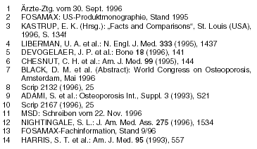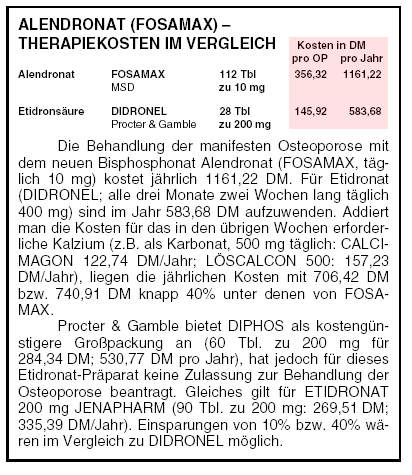 Jahren läßt sich kein Vorteil mehr sichern.8,14 Tierexperimentellen Daten zufolge soll Alendronat den Knochenaufbau erst in weit höheren