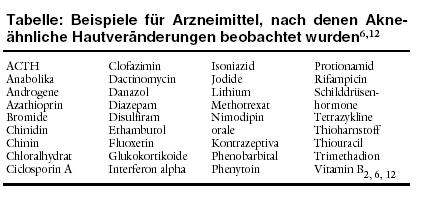 Medikamente wie Glukokortikoide oder Anabolika (a-t 12 [1996], 124; siehe Tabelle) rufen manchmal follikuläre