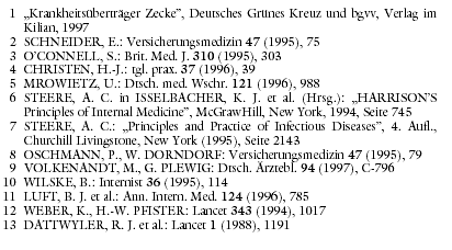 Angaben zum Grad der Durchseuchung der Zecken mit B. burgdorferi weichen zum Teil erheblich voneinander ab. In Deutschland sollen 10% bis 30% infiziert