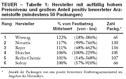 und Hoechst (106%) führt Wörwag mit Durchschnittspreisen von 122% die Liste der teuren Firmen an.