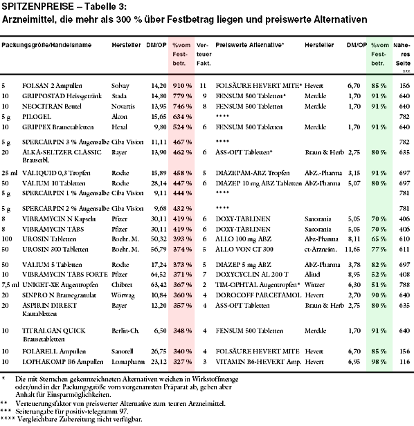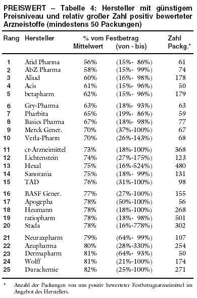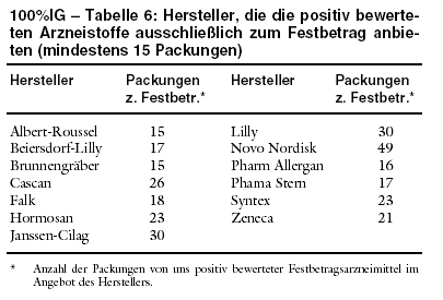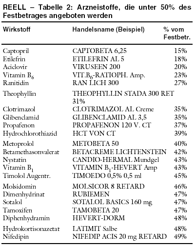 Nachfolgepräparate (a-t 8 [1996], 76) kann bereits zu 15% des Festbetrages verordnet werden (Tabelle 2). Ein