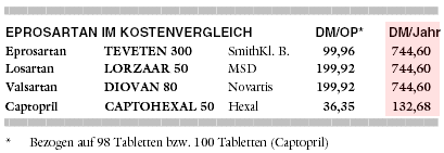 Mit jährlich 745 DM für 600 mg täglich wird Eprosartan zu den selben Kosten wie 50 mg Losartan (LORZAAR) und 80 mg