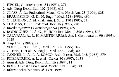 Mit knapp 1.000 Berichten liegt der H2-Antagonist Cimetidin (TAGAMET u.a.; vgl. a-t 4 [1988], 40) an der Spitze der an das WHO-Zentrum in Uppsala