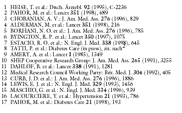 veröffentlichten Langzeitstudien Folgeerkrankungen des Hochdrucks und Sterblichkeit älterer Patienten, darunter 10% mit Diabetes.9-12