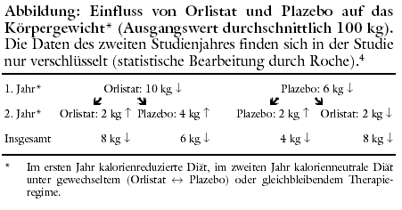 hypokalorischer Diät haben diejenigen, die dreimal täglich 120 mg Orlistat einnehmen, nach einem Jahr 4 kg mehr abgenommen als Personen der