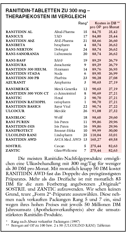 GUTE NOTEN FÜR RANITIDIN-PRÄPARATE |