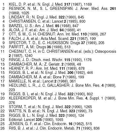 Radius unbeeinflußt blieb. Dennoch sank die Zahl neuer Wirbelfrakturen nicht signifikant (-15%). Die Zahl der Patienten mit neuen Frakturen war nahezu