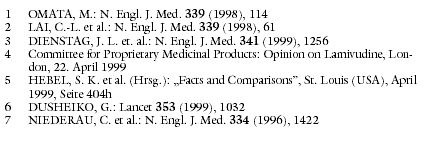 FAZIT: Das Nukleosidanalog Lamivudin (ZEFFIX) kann in einem Jahr bei jedem achten Patienten mit chronisch aktiver Hepatitis eine HBeAg-Serokonversion bewirken. Bei wie vielen Patienten die Unterdrückung der Virusvermehrung, die mit diesem Parameter erfasst wird, langfristig anhält, ist nicht bekannt. Dass sich dieser Effekt als klinischer Nutzen erweist, kann derzeit nur erhofft werden. Lamivudin ist einfacher anzuwenden, verträglicher und kostengünstiger als Interferon alfa (INTRON A u.a.). Es erzeugt aber häufig Resistenzen.