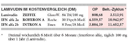 Über den klinischen Langzeitnutzen lässt sich nur spekulieren. HBeAg-Serokonversion nach Interferon geht mit geringerem Zirrhose- und Sterblichkeitsrisiko einher.7 Ob die durch Lamivudin erzielte Wirkung auf Surrogatparameter einen spürbaren Vorteil für die Patienten beinhaltet, bleibt zu klären.6