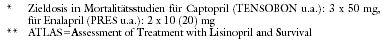 69).* In der jetzt publizierten ATLAS**-Studie wird der Einfluss von zwei Lisinopril (ACERBON u.a.)-Dosierungen (täglich 2,5 mg bis 5 mg versus 32,5 mg bis