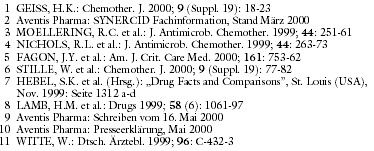 Staphylococcus aureus u.a. identische Heilungsraten von 47% (SYNERCID) und 48% (Vergleichsantibiotika).4 Auch bei nosokomialer Pneumonie