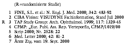 FAZIT: Der Photosensibilisator Verteporfin (VISUDYNE) scheint bei einigen Patienten mit fortgeschrittener altersbedingter Makuladegeneration und klassischer