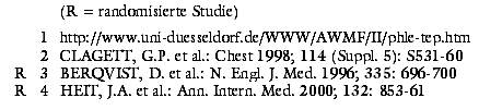 In der von uns vorgestellten aktuellen und bisher größten Studie, in der die Forderungen des ACCP nach klinischen Endpunkten umgesetzt werden, bleibt ein Nutzen der poststationären Heparinprophylaxe hinsichtlich Verringerung symptomatischer Thrombosen, Lungenembolien oder Todesfällen aus.4 Wir halten deshalb unsere Empfehlung für ausreichend "hart" begründet, die der Leitlinie der DGP jedoch nicht, -Red.