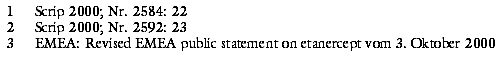 Anfang Oktober warnte die europäische Arzneimittelbehörde EMEA vor Blutschäden unter Etanercept (ENBREL, a-t 2000; 31: 100), einem Tumornekrosefaktor-Hemmstoff und Reservemittel bei rheumatoider Arthritis. Einige Tage später erhielten amerikanische Ärzte einen "Dear Doctor Letter", in dem zusätzlich auf Demyelinisierungserkrankungen des ZNS hingewiesen wird, die als Multiple Sklerose, Myelitis und Optikusneuritis in Erscheinung treten. Auch für andere Tumornekrosefaktor-Antagonisten ist beschrieben, dass unter der Behandlung die Aktivität von Multipler Sklerose zunimmt. Patienten mit bestehenden demyelinisierenden Erkrankungen des ZNS sollen Etanercept daher nur nach sorgfältiger Nutzen-Risiko-Abwägung erhalten.1,2