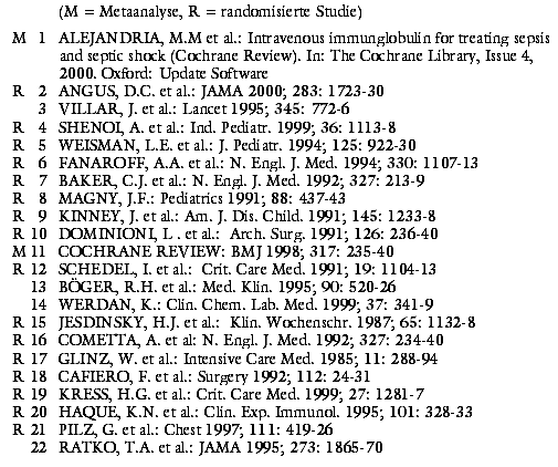 α-Antikörper und IL 1-Rezeptorantagonist, n = 4.586) und Anti-Endotoxinen (E5, HA-1A, Anti-LPS, n = 1.992).1 Eine neuere Untersuchung mit E5