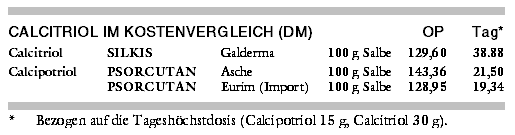 von Calcipotriol (PSORCUTAN u.a.; 21,50 DM bzw. 19,50 DM/Tag für 15 g). Nur im Gramm-zu-Gramm-Vergleich ist SILKIS 10% billiger als PSORCUTAN bzw.