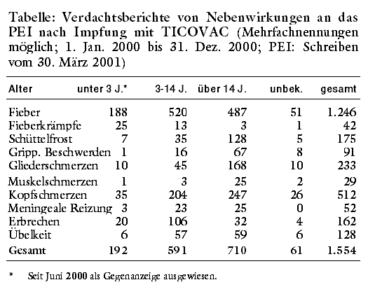 Apotheker vom 21. Juni 2000). Erst durch die breite Anwendung von TICOVAC sei deutlich geworden, in welch starkem Maße Fieberreaktionen