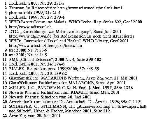MALARIAMEDIKAMENTE: An der Wirksamkeit der gebräuchlichen Malariaprophylaktika besteht kein Zweifel. Randomisierte Studien an