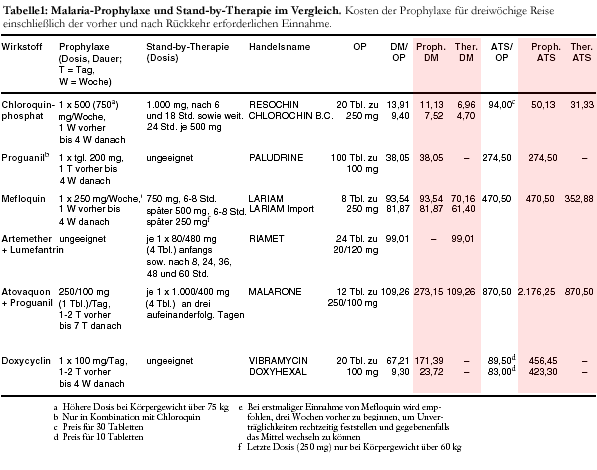 dreiwöchige Reise; Tabelle 1), damit die Reisenden nicht verschreckt ganz auf die Prophylaxe verzichten, wenn sie das Rezept einlösen wollen.