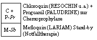 (RESOCHIN u.a.), C/C+P = C oder C+P, C+P = Chloroquin + Proguanil (PALUDRINE), D =