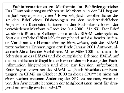 METFORMIN (GLUCOPHAGE U.A.): BEDENKLICHE MÄNGEL IN DER FACHINFORMATION |