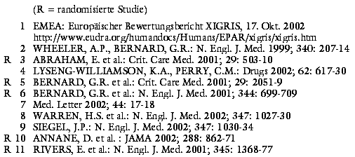 Verfahren zur Verfügung, das die Sterblichkeit von Patienten mit septischem Schock im Krankenhaus und nach 60 Tagen (NNT = 7 bzw. 8) deutlich mindert.