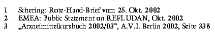 Das früher von Aventis vertriebene REFLUDAN wird heute von Schering angeboten und geht demnächst auf Pharmion über. Schering hat die Fachkreise per Rote-Hand-Brief hinreichend und zeitnah über die neuen Erkenntnisse informiert - ein erfreulicher Gegensatz zur unzureichenden und hinhaltenden Informationspolitik der Firma Pharmacia zu DYNASTAT (siehe oben).
