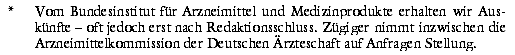 a-t-Abonnenten können sich seit Oktober im Internet über 12.000 NETZWERK-Berichte informieren (s. Seite 131). Wir erwarten detaillierte Auskünfte auch von Firmen und mehr Transparenz bei Behörden und Arzneimittelkommissionen*. Die Daten aus Nebenwirkungsberichten müssen fachöffentlich zugänglich sein und dürfen nicht in einer Art "Bermudadreieck" verschwinden.