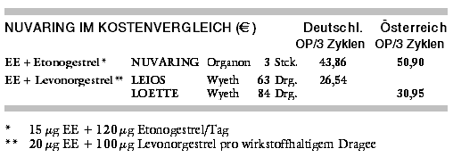 KOSTEN: Für die dreimonatige Verhütung mit NUVARING sind in Deutschland 44 € aufzuwenden und damit 65% mehr als für eine