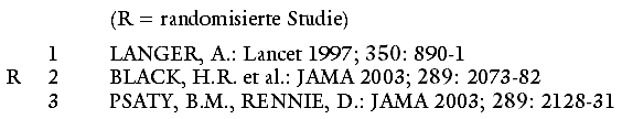 dosiertem Hydrochlorothiazid [ESIDRIX u.a.] oder Atenolol [TENORMIN u.a.]) als Erstwahlmittel, sind zuverlässige Aussagen auf der Basis der jetzt