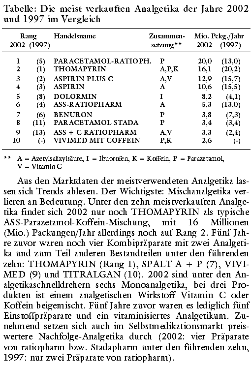 unverändert vom Gebrauch von Mischanalgetika ab. Der Verkauf dieser Produkte ist rückläufig.