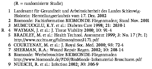 produziert: Maden der Fliegenart Lucilia sericata (BIOMONDE Fliegenmaden), die zur Behandlung von Wundheilungsstörungen bei Ulcus cruris, diabetischen