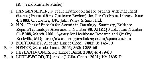 Angesichts der Datenlage raten wir außerhalb von solchen auf die Sicherheit des Mittels angelegten kontrollierten Studien von der Erythropoietin-Anwendung bei Tumorpatienten ab.