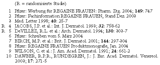 als Beleg aber lediglich zwei unveröffentlichte Quellen sowie eine Untersuchung mit acht Frauen an, von denen vier Minoxidil verwendet haben. Gibt es