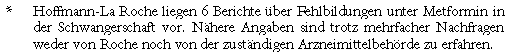 bisherigen Daten reichen für eine zuverlässige Beurteilung des teratogenen Potenzials jedoch nicht aus.* Metformin soll daher zur