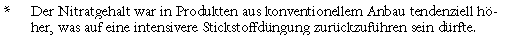 Vergleichsuntersuchungen zwischen konventionell und kontrolliert ökologisch erzeugten Nahrungsmitteln ergeben ebenfalls keine eindeutigen Unterschiede im