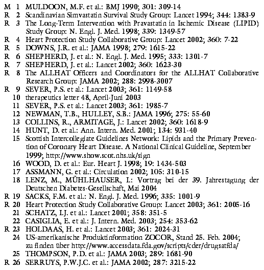 oder stabiler Angina pectoris in der Vorgeschichte von medikamentöser Cholesterinsenkung im Sinne einer Lebensverlängerung profitieren (vgl. Tabelle). Zwei weitere Sekundärpräventions-Studien mit Pravastatin (PRAVASIN u.a.) und Simvastatin - LIPID**3 und HPS**4 - haben