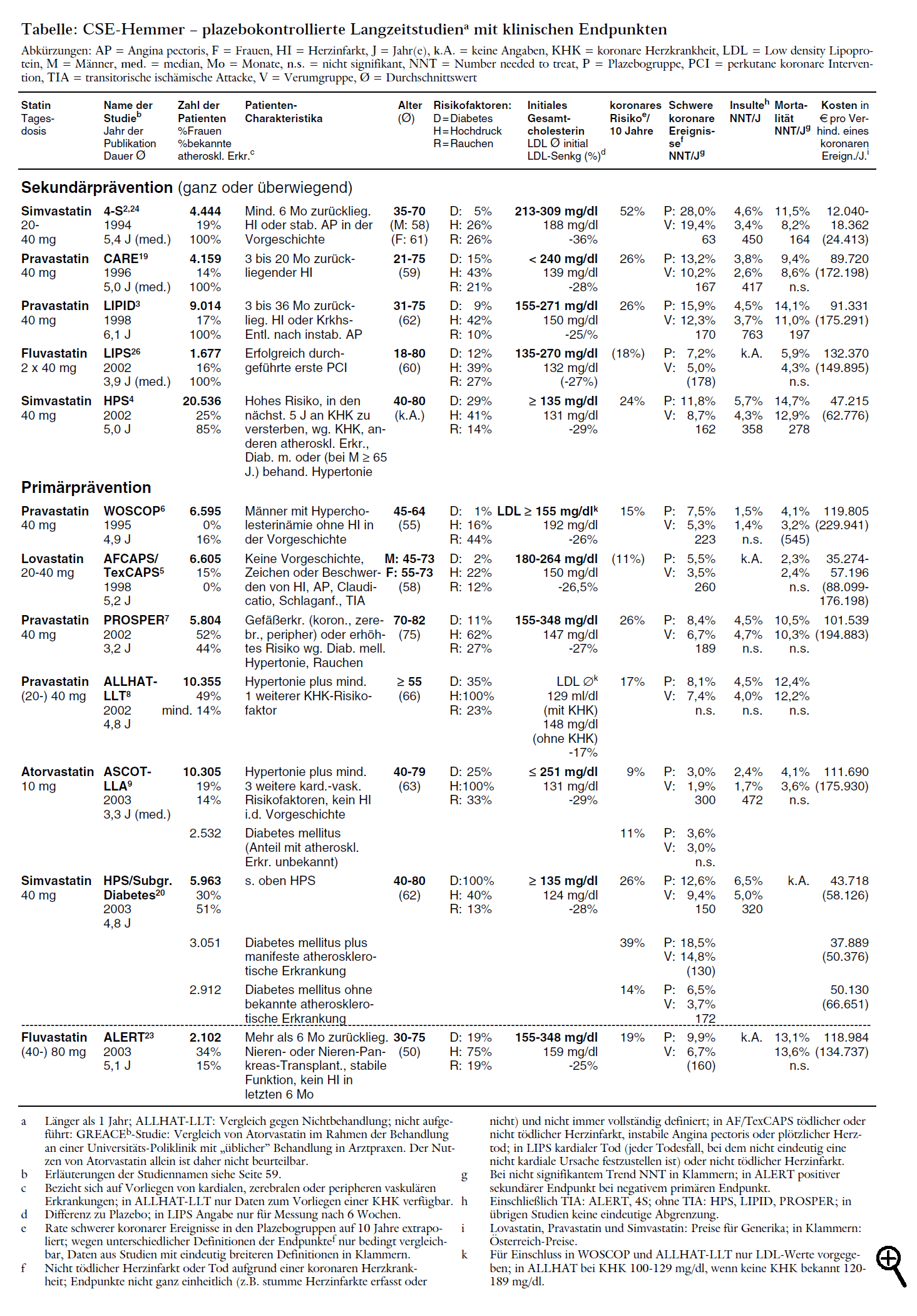 in allen hierzu durchgeführten Statinstudien (vgl. Tabelle) zumindest bei einem Teil der Patienten eine bekannte koronare Herzkrankheit oder andere manifeste